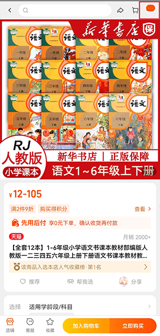 2、在第三方购物平台的商品详情页中,点击右上角的分享按钮。