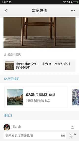 在艺app是北京在艺推出的一款艺术资讯应用,定位于艺术生活服务和社交点评平台,致力于为艺术爱好者提供每日全球最新艺术展览(包括博物馆/美术馆展览、画廊展览、拍卖预展等),艺术作品和同城艺术活动等信息,并鼓励用户以笔记或者话题的形式点评、记录、分享自己的艺术见解和艺术生活,喜欢的朋友请下载体验!