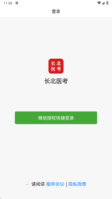 1、下载并安装长北医考app,启动软件。