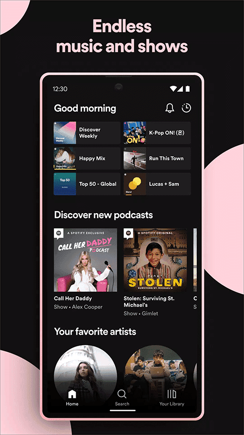 每一位小伙伴的手机里面应该都有一个听歌软件吧,作为当代年轻人谁还会不听歌呢?由于很多听歌软件都有着版权的限制,用户很难随心所欲的听歌,因此小编就给大家推荐声破天安卓最新版,英文名叫Spotify,这是全球知名的正版音乐服务平台,所拥有的曲库十分广泛,无论是欧美、日韩还是华语歌曲全都拥有,基本上你知道的歌曲都能够在这里找到,而且通过搜索栏只需要输入几个关键词就能够智能匹配出你想要找的歌曲,十分便捷。