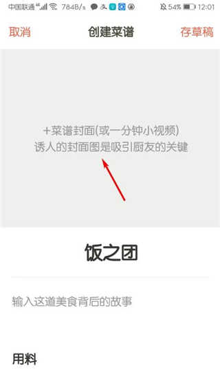 5、上传菜谱封面和其他内容;