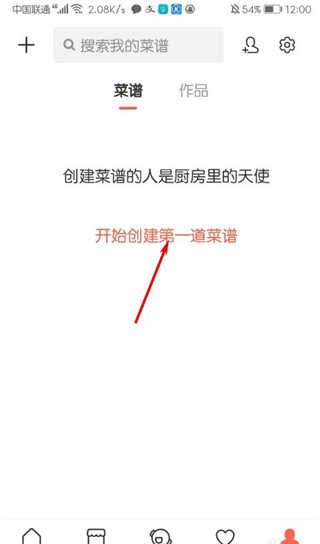 3、在我的界面,点击【开始创建我第一道菜谱】;