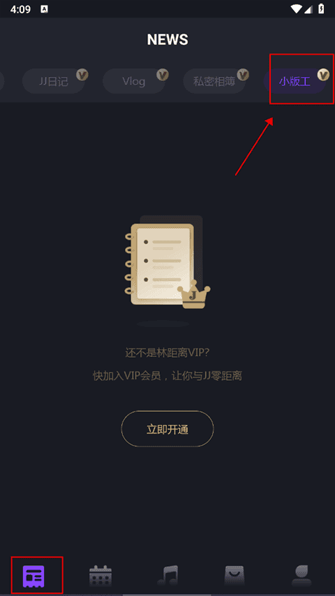 3、入会成功后首页中的小版工功能就会解锁,若有演唱会行程的话,小版工中会有抽签活动入口