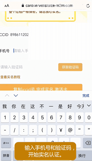 三、输入手机号和验证码,开始实名认证
