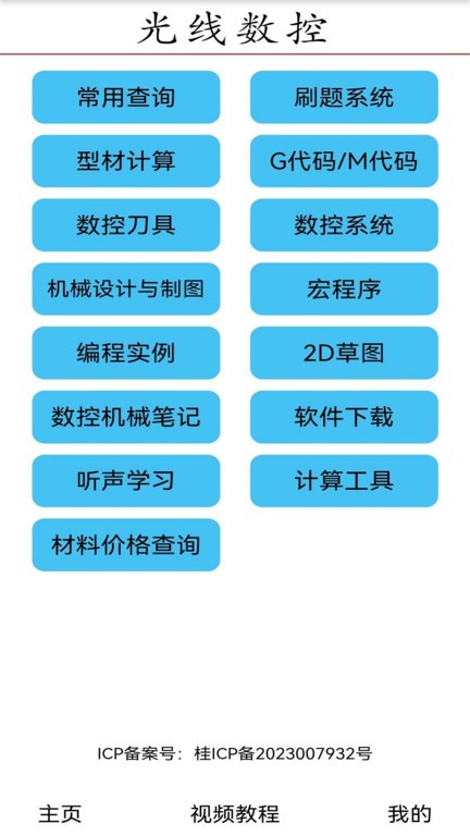 在软件上面给用户们提供了机械设计与制图,数控刷题系统,数控刀具学习,常用查询,编程实例,数控G/M代码,数控系统学习,数控机床操作,宏程序,2D草图,数控和机械行业常用计算,型材计算,材料价格查询,行业进阶学习,听声学习