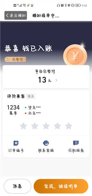 4、进入我的”页面点击模拟接单”,体验虚拟接单流程。