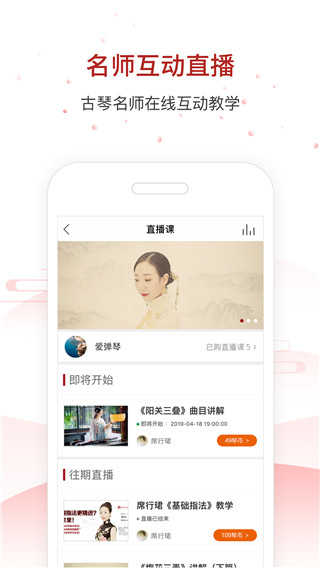 包含古琴名曲、乐谱、教学视频以及线上直播课程,满足你的所有需求。