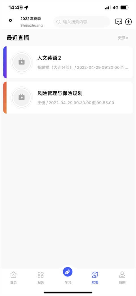 切换至发现页面,用户可以浏览近期直播课程及公开课信息,及时掌握最新动态。