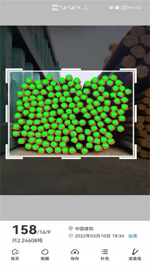 这是一款基于手机拍照技术的智能识别工具,可快速统计钢管、钢筋、方管、方木、原木、盘扣轮扣等多种建筑材料的数量。只需拍摄一张照片,系统即可在一秒内完成自动数量识别,大幅提升工作效率。