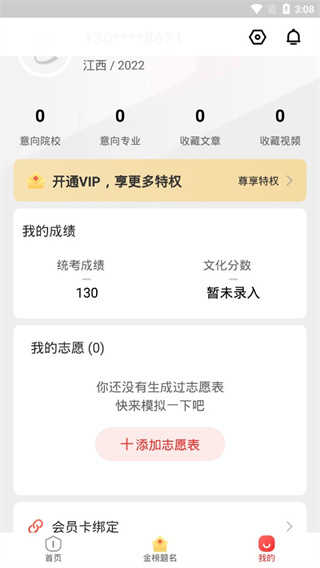 6、在我的页面中查看模拟志愿表,并管理自己感兴趣的院校和专业;