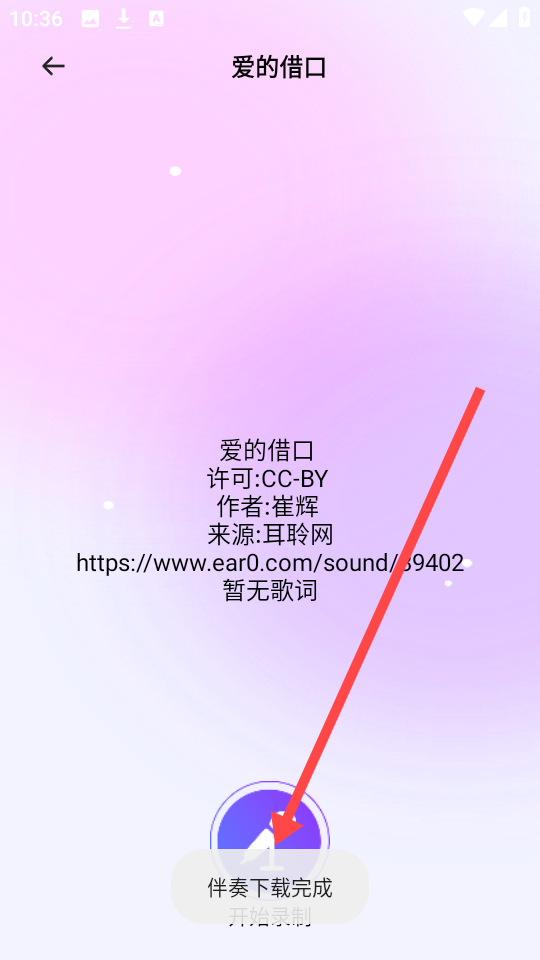4、等待伴奏加载完成后即可开始演唱,尽情展现你的歌喉吧。