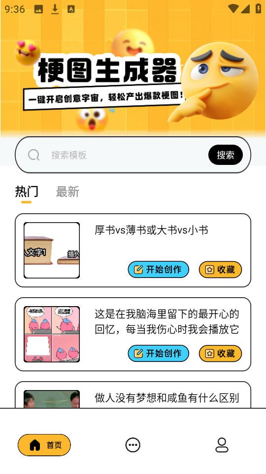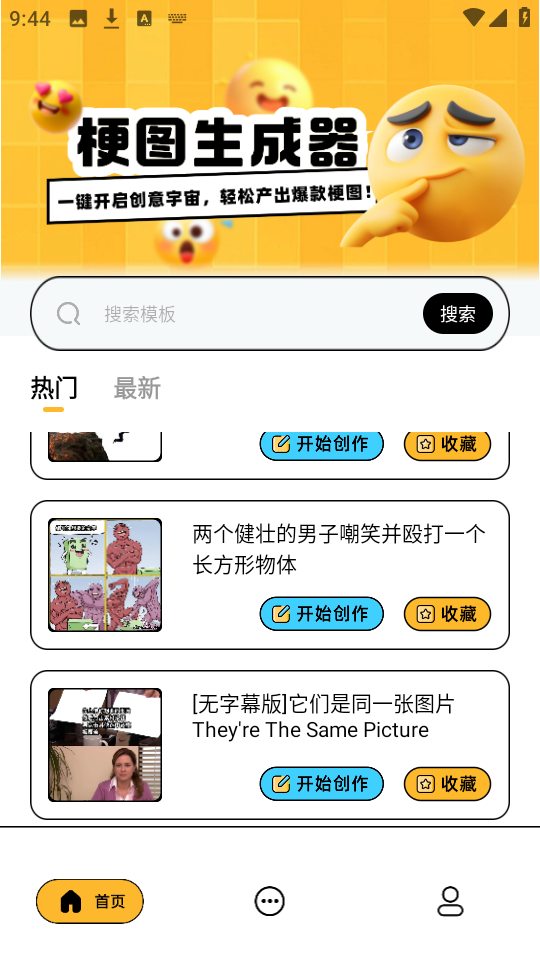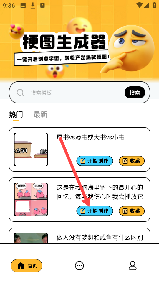 3、挑选心仪的模板,点击创作”按钮,开启你的梗图之旅。