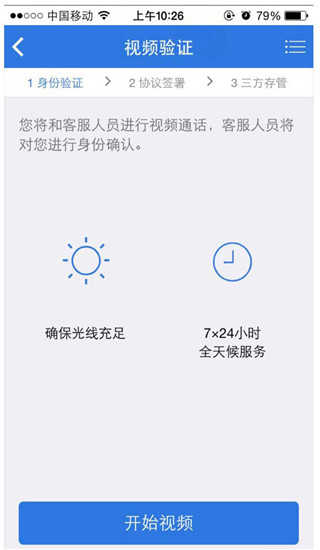 仅需三分钟刷脸验证,7×24小时全天候服务,单向视频认证免排队,一键绑定银行卡。