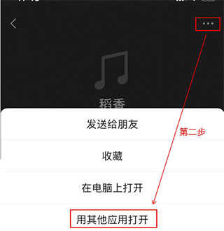 2、在内打开音乐文件,点击右上角的...”按钮,选择用其他应用打开”。