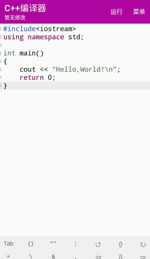 1、下载并安装C++编译器手机版后,启动软件即可开始编写代码。完成编写后点击运行”按钮,即可进行编译和运行操作;