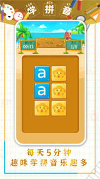 儿童学拼音是一款专为孩子设计的教育类应用,提供丰富的拼音学习资源。通过生动有趣的动画视频、互动游戏和科学的教学方法,让孩子在快乐中掌握拼音知识。只需每天投入几分钟时间,儿童学拼音手机版就能帮助孩子轻松学会拼音,让学习充满乐趣。快来体验吧!
