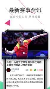 中国体育是一款专注于体育赛事直播的多功能软件,中国体育安卓版(乒乓球直播)涵盖足球、篮球、赛车等多类项目的实时资讯与精彩赛事直播。通过高清画质和激情四溢的解说,为用户带来身临其境的观赛体验。无论是资深体育迷还是初入门的新手,都能在这里找到属于自己的乐趣,快来下载中国体育app吧!
