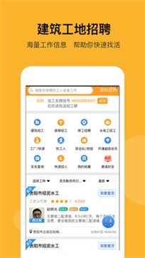 2、精准找活:优先展示附近工地的招聘信息,为建筑工人提供更多优质选择;