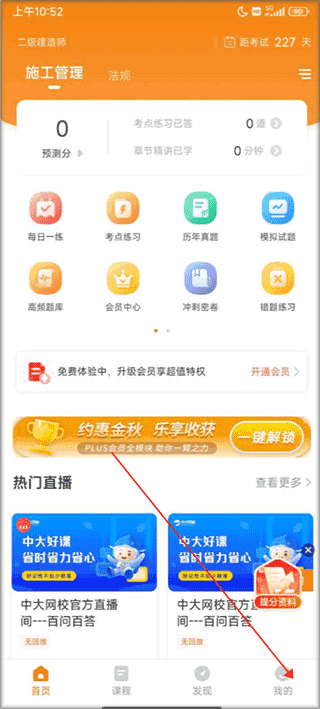 1、首先下载并安装二级建造师准题库应用,打开后进入主界面,切换到我的”页面。