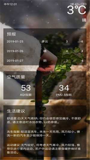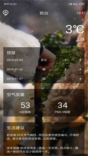 [实时天气信息]实时获取您当前所在位置的天气预报和空气质量污染指数;