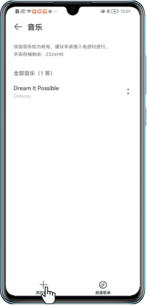 1、请您进入华为运动健康手表app的设备页,点击已连接的手表,点击音乐”选项。