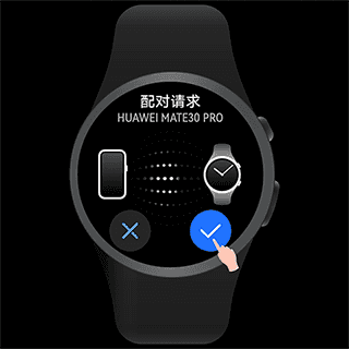 c、当穿戴设备屏幕出现配对请求时,点击√,同时在手机端根据界面提示完成穿戴设备和手机配对。