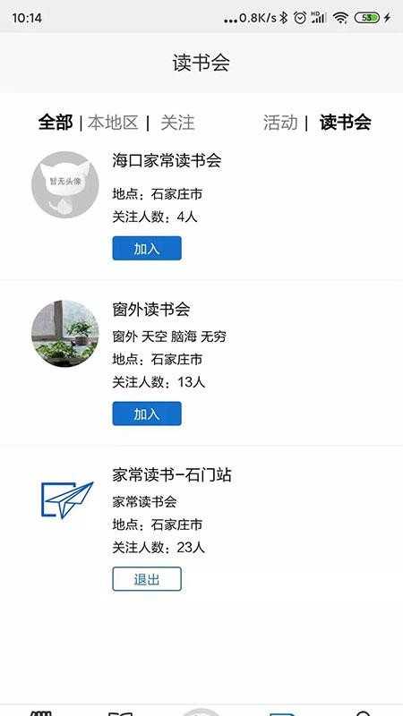 4、点击查看读书会,选择加入读书会或者查看众多的活动内容