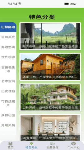 3、可进入到主题民宿中心对各种主题民宿进行查看了解;