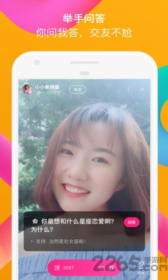 3、点击直播入口,浏览热门直播间。通过弹幕或礼物与主播互动,也可一键开启直播,分享你的才艺和生活。