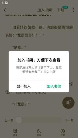 5、最方便的是听书功能,可以选择任意章节开始听书,然后就能去做其他事情了