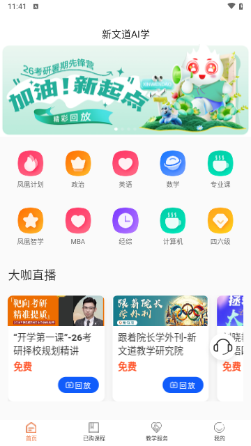 新文道考研是一款个性化教学服务的教育平台,这里有有金牌讲师实时在线直播教学,针对不同地区的教学要求来提供帮助,让教学更轻松学习更有效。软件支持在线管理学籍、课表、成绩等等,让你的学习变得更加的简单。