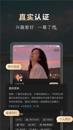 4、致力于创造最真实的结伴旅行,每一个用户我们都将进行实名/真人核查,拒绝照骗。