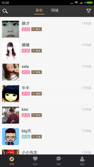 2、【同城交友】可以看到同城的朋友,还可以根据条件搜索;