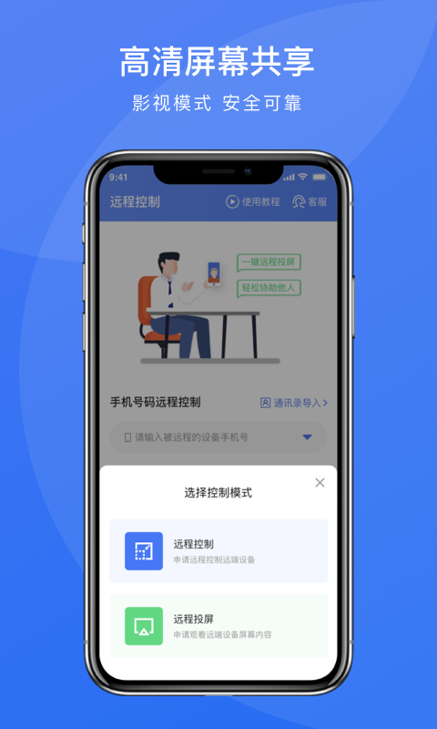3、在控制端输入被控制端的手机号码,也可以选择从通讯录导入。