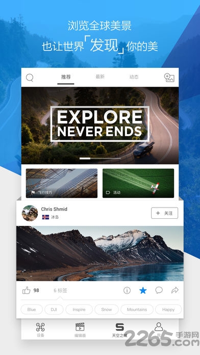 djigo4历史版本是一款手机端的视频编辑软件,同时可以随时调整视频数据参数以及进行航拍,并且实时记录下航拍的每一个飞行踪迹!操作简单,功能齐全!方便用户实时的进行操作!感兴趣的小伙伴快来2265安卓网下载吧!