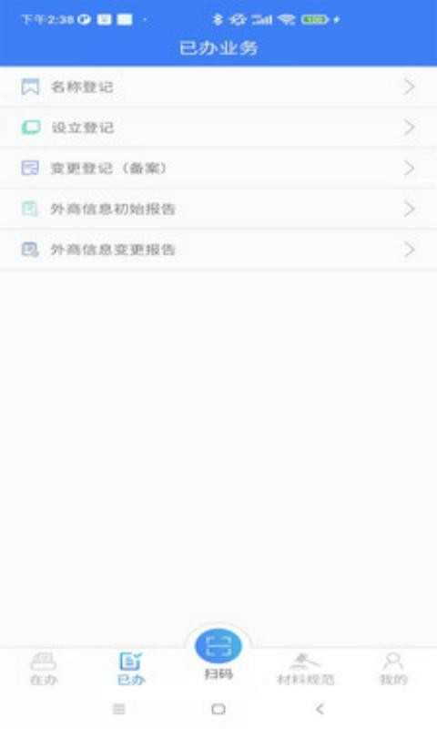 1、首先点击业务办理”,然后点击的变更登记”图标