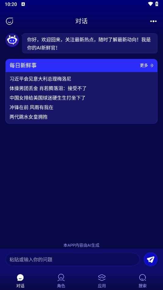 1、通过每日更新的新鲜事、即时的AI对话,拓宽了用户在学习和创作方面。