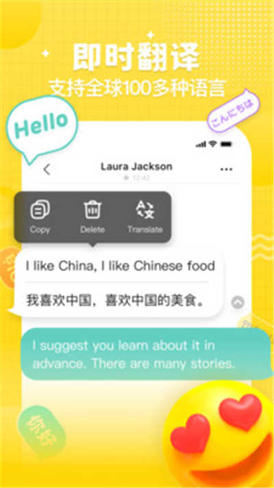 1、在这里,你可以与来自世界各地的人聊天,软件会自动为你翻译;