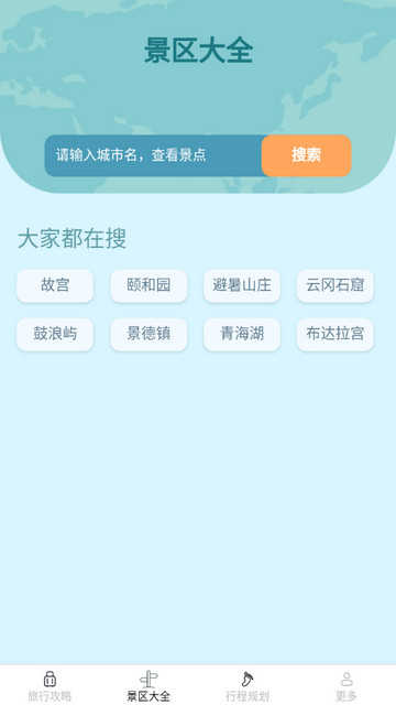 2、景点搜索,平台还支持用户在线对自己喜欢的景点进行搜索,输入城市名就可以快捷的查找。
