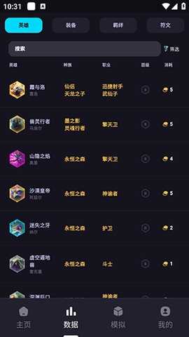 2、【数据】中则是包含了现有所有棋盘英雄的属性成长值,以及升级所需要花费的金币数量。