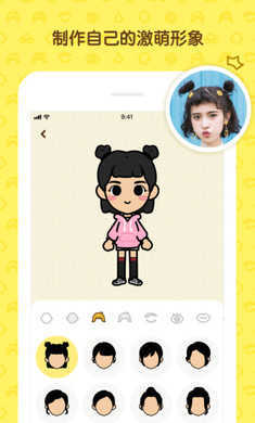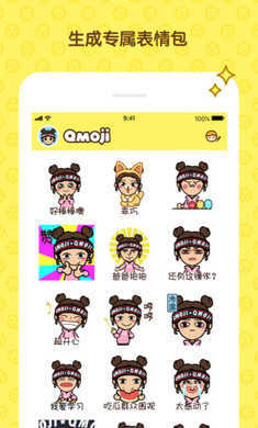 只需要左右滑动,点击,就可以完成形象自定义。只需点击表情就可以选择分享到QQ,,等社交呢。