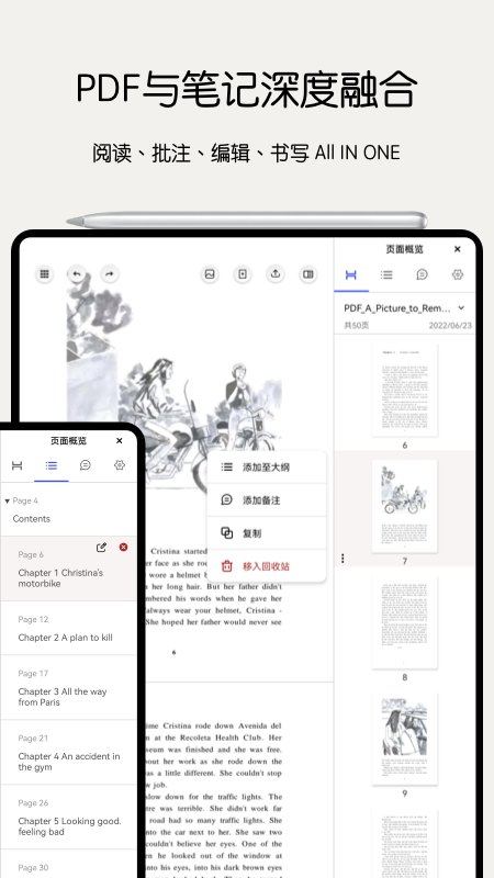 一笔记帮您轻松设置PDF与笔记的大纲和备注,并支持修改。编辑及拖拽调整层次结构。让学习资料结构清晰,快速跳转到所需页面,重点内容一目了然。