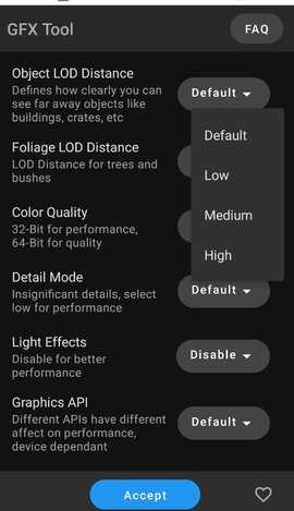 3、无论您使用的是智能手机还是平板设备,GFX游戏辅助工具都能根据您的硬件情况智能匹配最优画质设置。