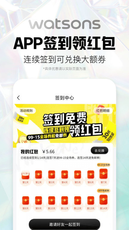 4、支持屈臣氏30天体验会员,购物享会员价和积分等权益
