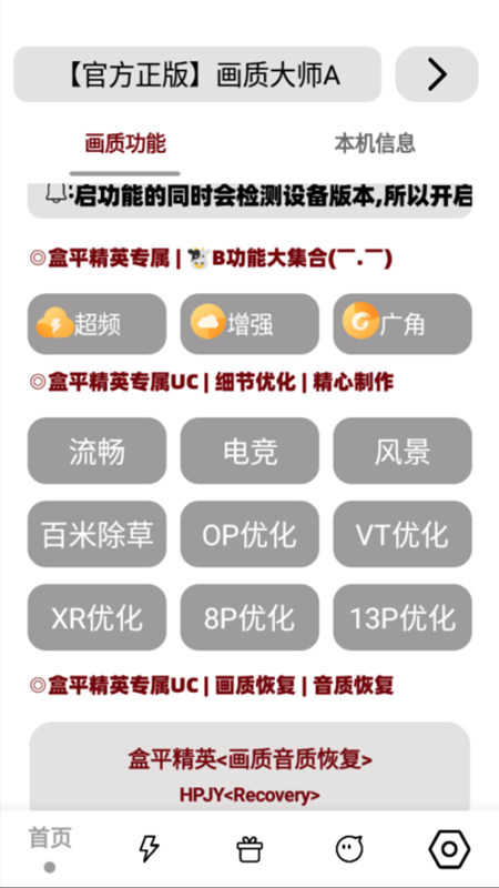 1、支持多种手机游戏,包括王者荣耀、PUBG、和平精英等热门游戏,提供全面精品的画质工具。