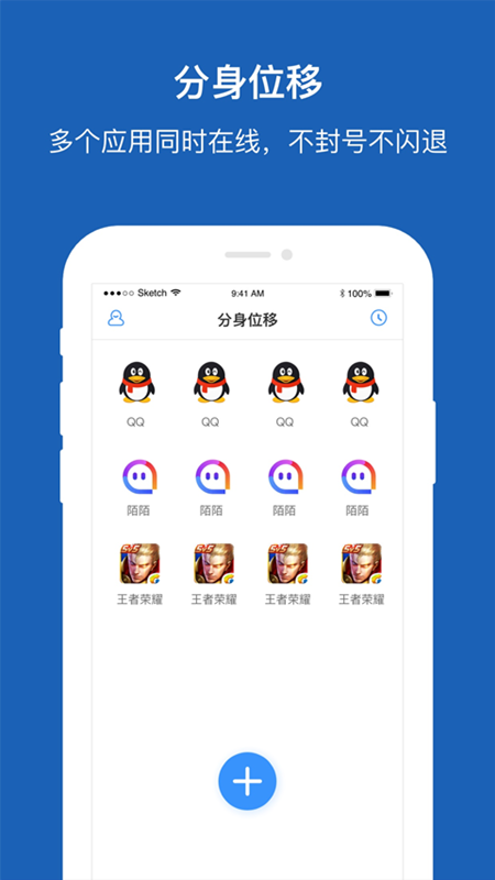 分身位移一款手机应用不限次数,游戏多开功能的软件,可以帮助游戏和软件进行多开挂机,无需太多繁琐的操作就能实现对应用的复制,一键多开允许你在一个手机上使用两个同一款软件和应用。有了这款app再也不用带着两个手机到处跑了!