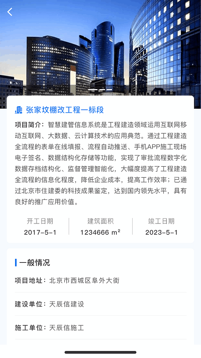 智慧建管信息系统是工程建造领域运用互联网、移动互联网、大数据、云计算技术的应用典范。通过工程建造全流程的表单在线填报、流程自动推送、手机APP施工现场电子签名、数据结构化存储等功能,实现了审批流程数字化、数据存档结构化、监督管理智能化,大幅度提高了工程建造全流程的信息化程度,降低企业成本,提高工作效率;已通过北京市住建委的科技成果鉴定,达到国内领先水平,具有良好的推广应用价值。