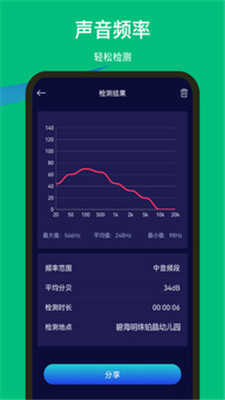 -频率检测:独家算法测试声音频率,频率分贝结果一次显示,保护听觉远离声音污染。