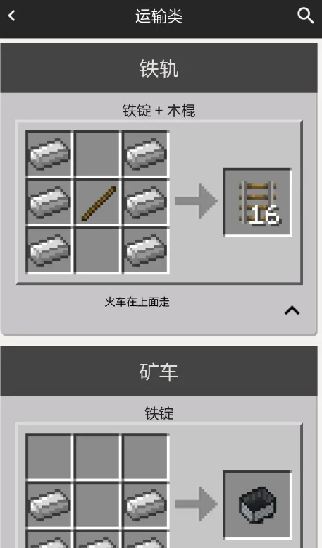 4、包含了常见物品,及其工程建筑,装饰设计,染剂,食材,照明灯具,铁矿石,红石,运送,专用工具,武器装备, 附魔武器,药液和别的类型的合成动态图。