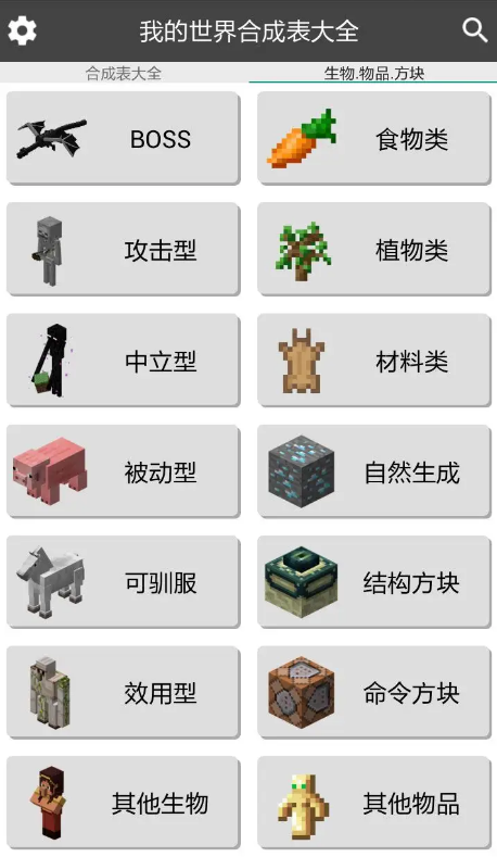1、首先下载好本站带来的我的世界合成表大全,进入首页大家就可以看见很多超详细的合成表类目,玩家可以根据自己的需求来查看攻略。